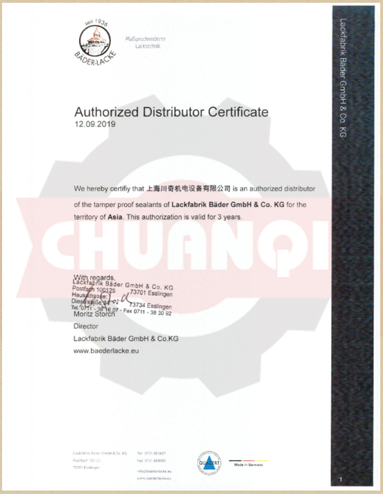 德國(guó)Bader-Lacke貝德代理證書(shū)